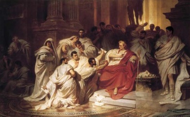 Опишите рисунок "Убийство Цезаря в сенате". Если можно, то давайте проще (именно то, что изображено на рисунке).