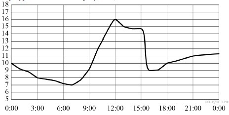 На рисунке показано, как изменялась температура воздуха на протяжении одних суток. По горизонтали указано время суток, по вертикали — значение температуры в градусах Цельсия. Найдите наименьшее значение температуры. Ответ дайте в градусах Цельсия.
