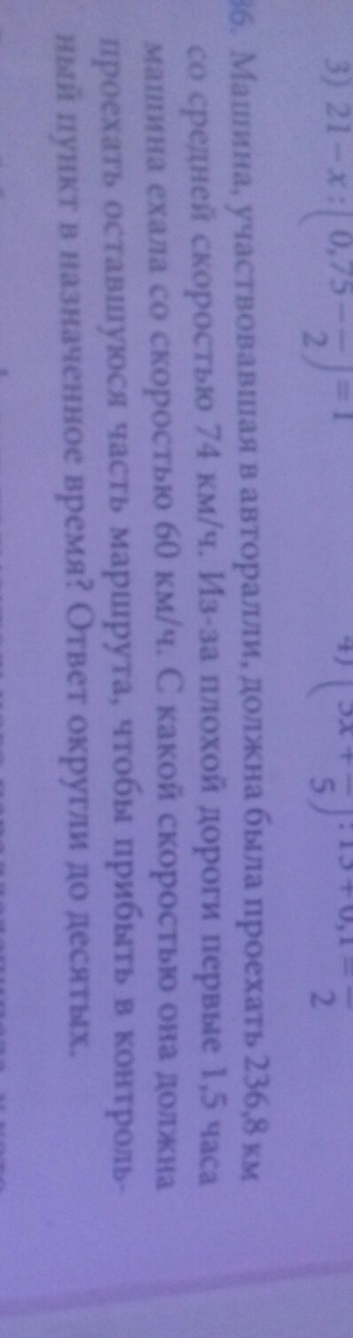 236,8/74=3,2 часа должен быть путь, чтобы приехать вовремя