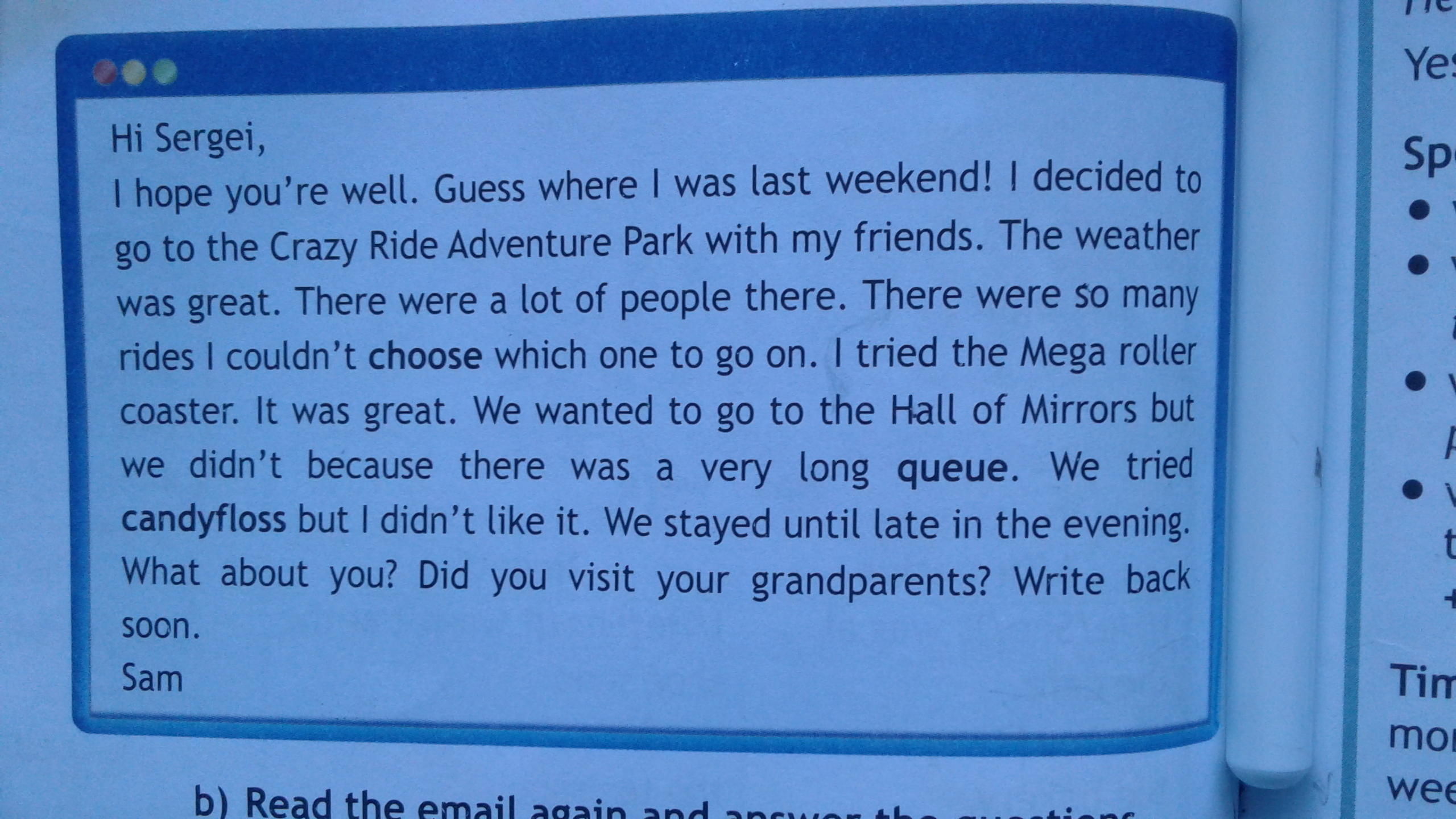 I hope you're well. Guess where I was last weekend! I decided to go to the Royal Zoo with my friends. The weather was great. There were a lot of people there. There are many interesting animals in the zoo. I feeded monkey and peacock. It was interesting.