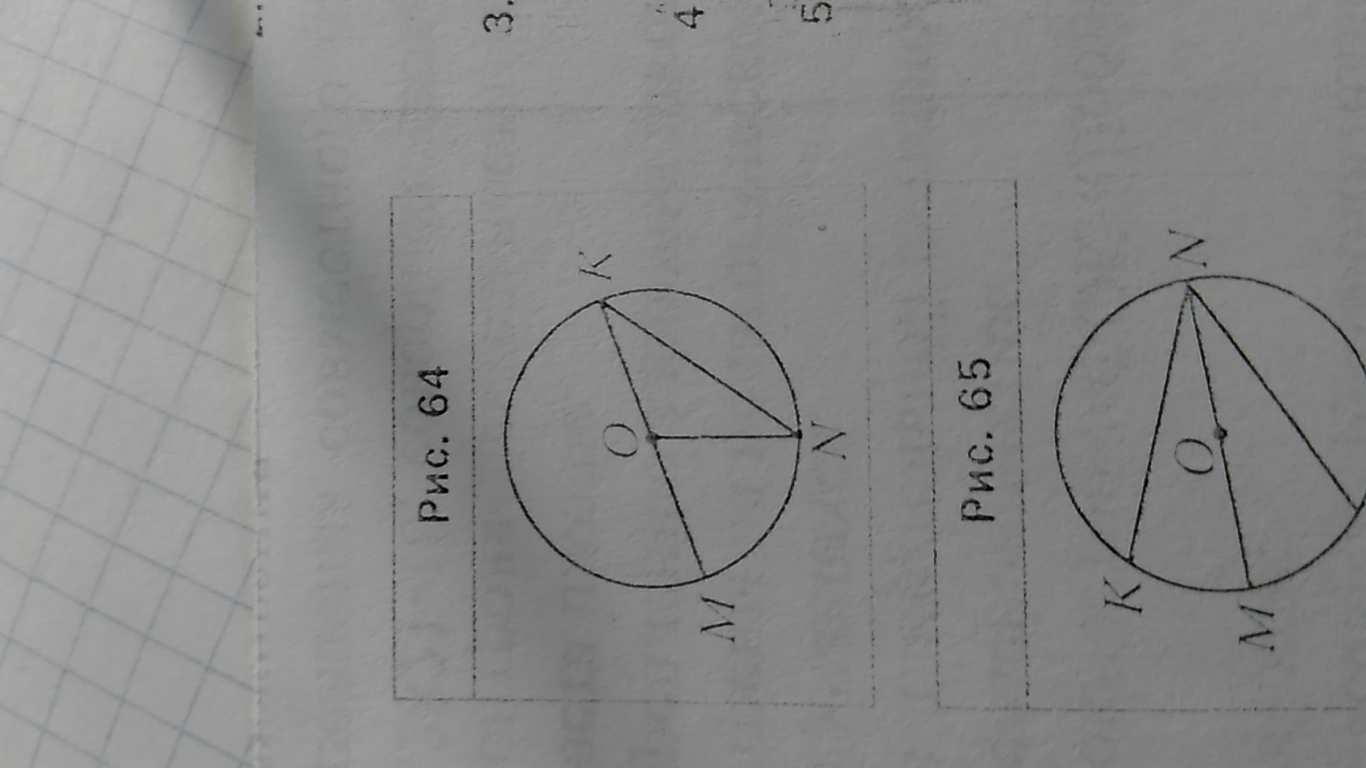 1)на рисунке (64) точка О-центр окружности,угол МОN=68°. найдите угол MKN