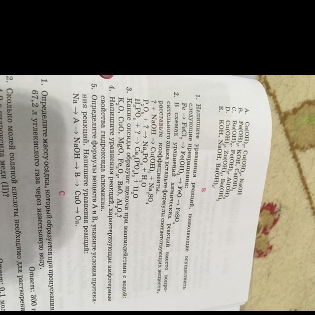 2)FeCl2+2NaOH= 2NaCl +Fe(OH)2(осадок)