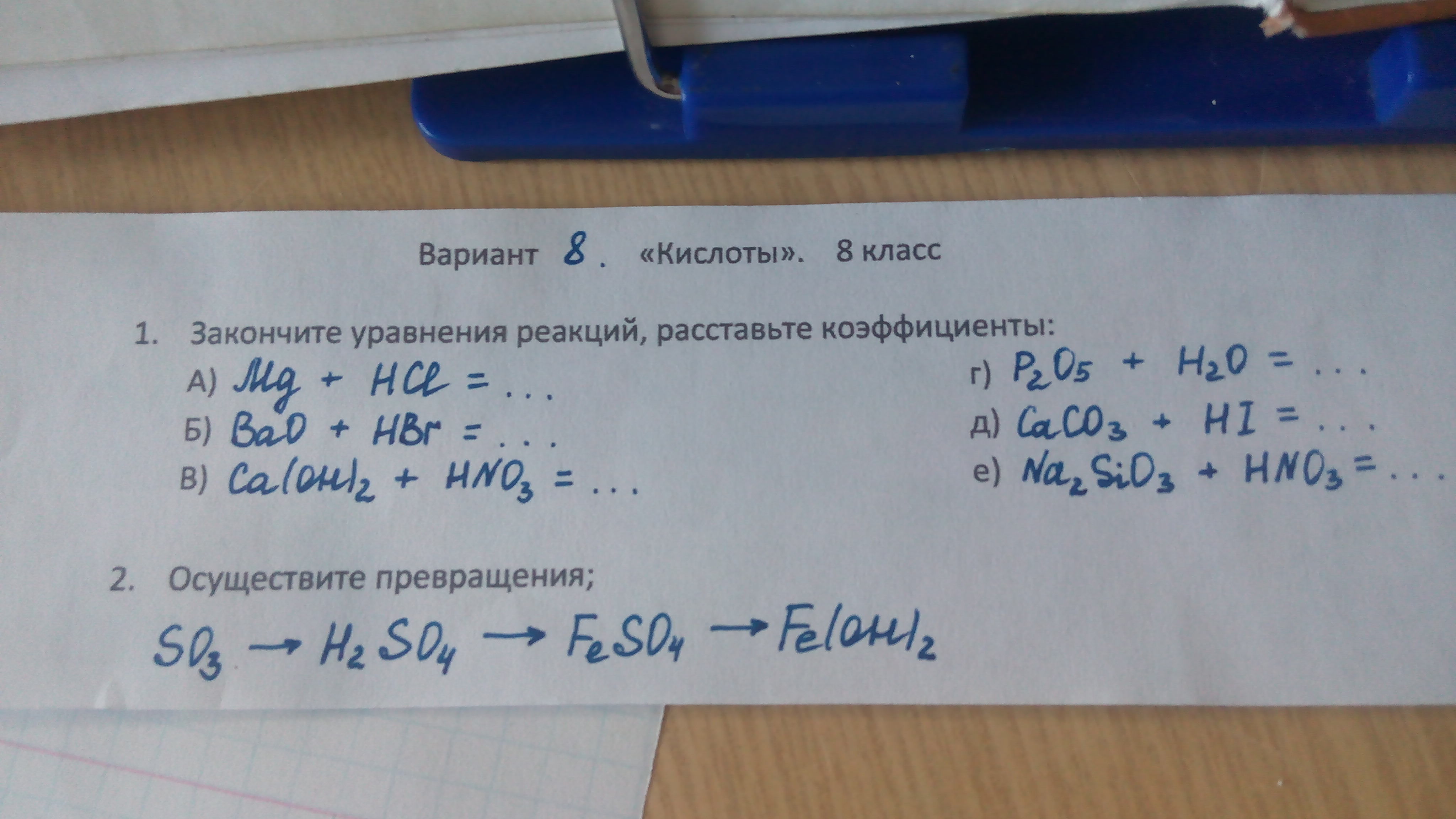 Химия два задания восьмой класс.