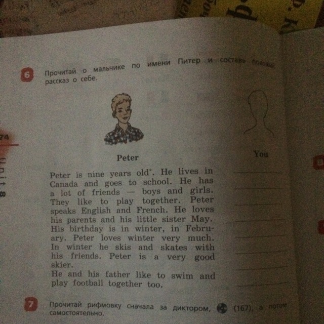 Помогите по английскому,если что моё имя Софина мне 10лет увлекаюсь плаванием и музыкой живу в городе Казань приволжский район учусь в первую смену в 3в классе