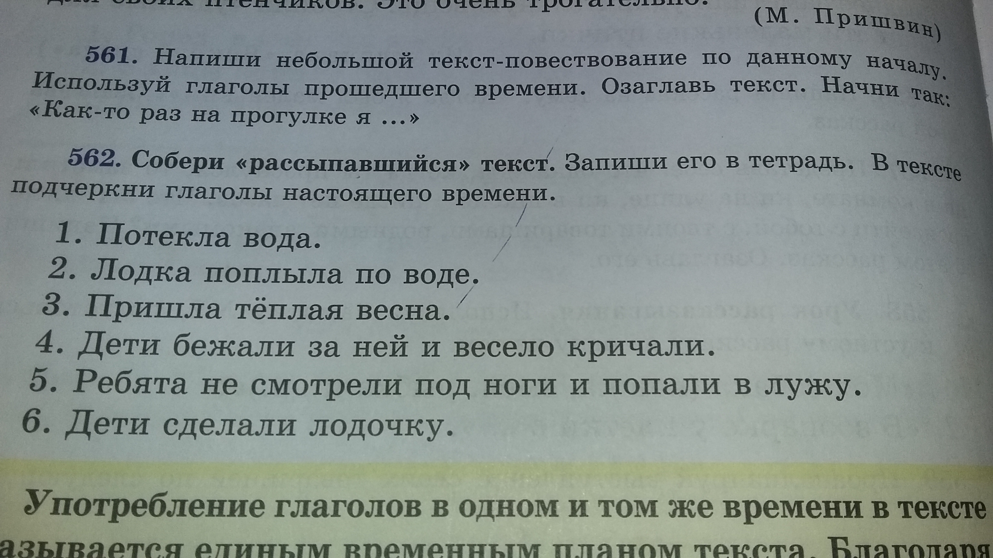 Пришла тёплая весна.Потекла вода.Ребята не смотрели под ноги и попали в лужу.Дети сделали лодочку.Лодка поплыла по воде.Дети бежали за ней и весело кричали.