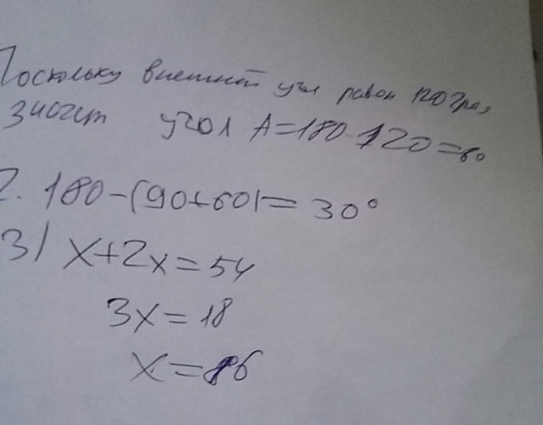 В треугольнике ABC с прямым углом C,внешний угол при вершине A равен 120градусов.Найдите AB и AC,если известно,что AB+AC=54см