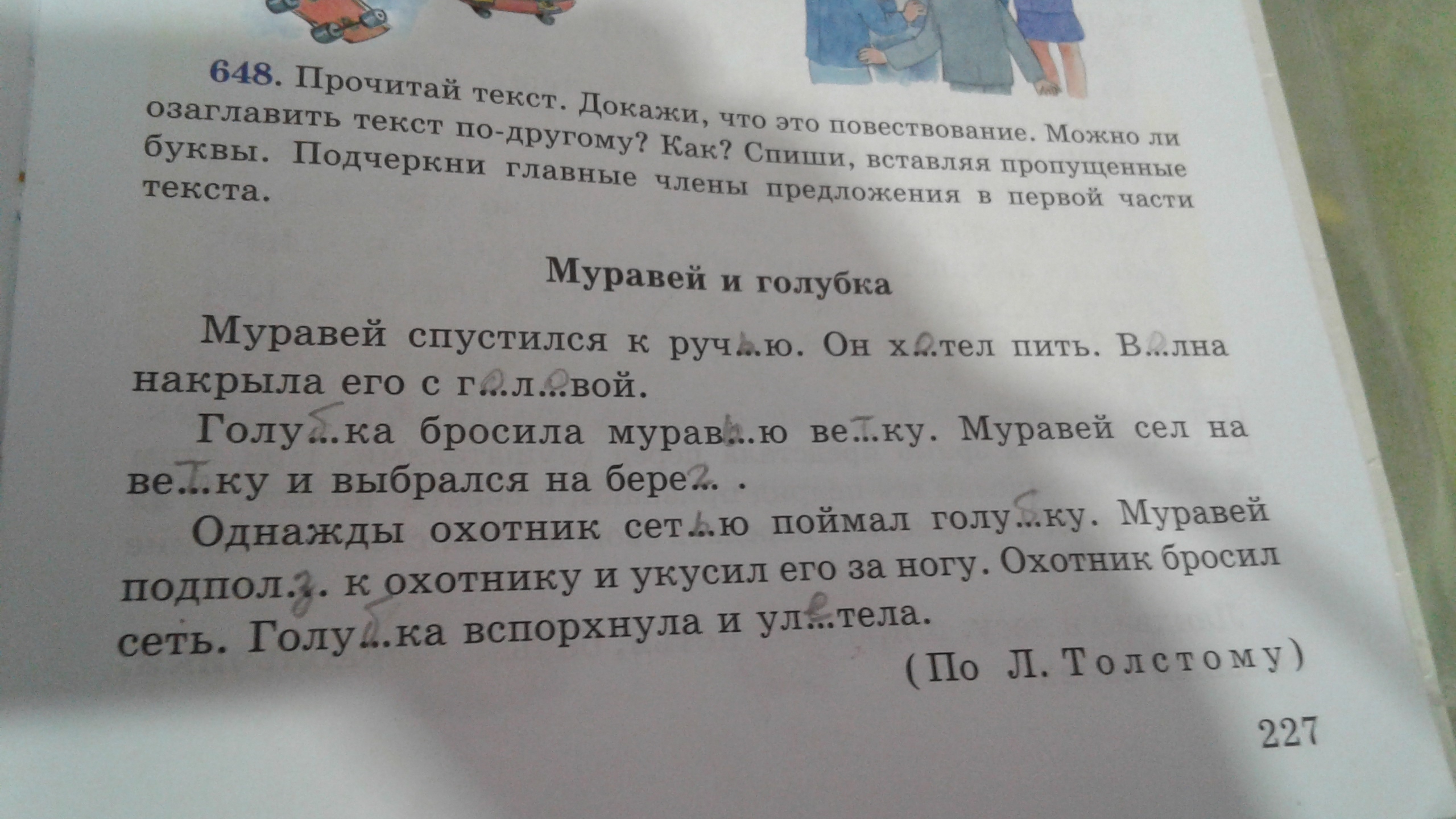 прочитай текст докажи что это повествование можно ли озоглавить текст по другому Как с пиши вставляя пропущеные буквы почеркни главные челены предложении в первой части текста