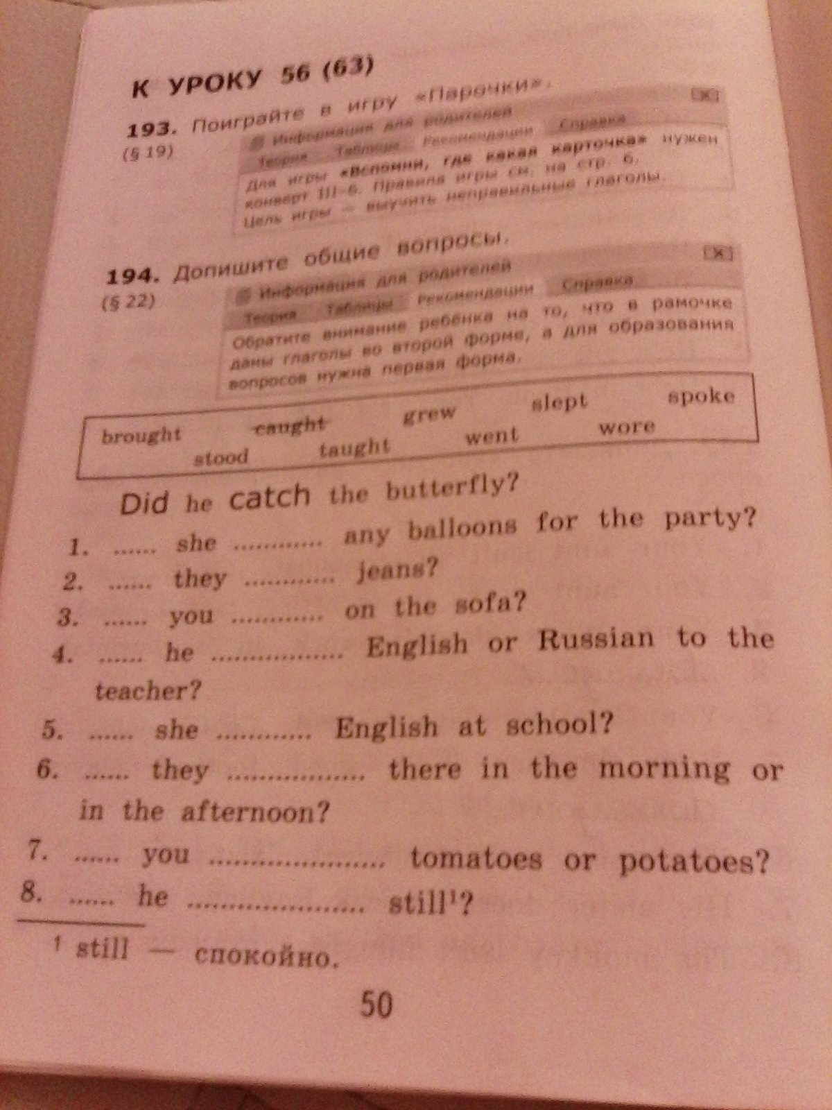 1.Did....bring.2 Did...wear.3. Did....sleep. 4 Did...speak. 5 Did... teach. 6 Did... go. 7 Did ....grow 8 Did .... stand
