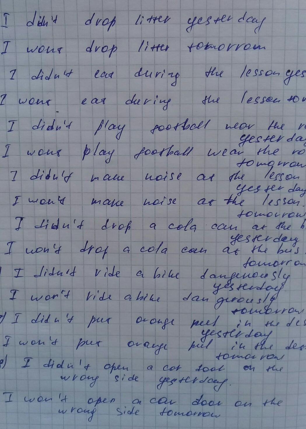 yesterday and tomorrow эти слова написала снизу каждой предложкнии