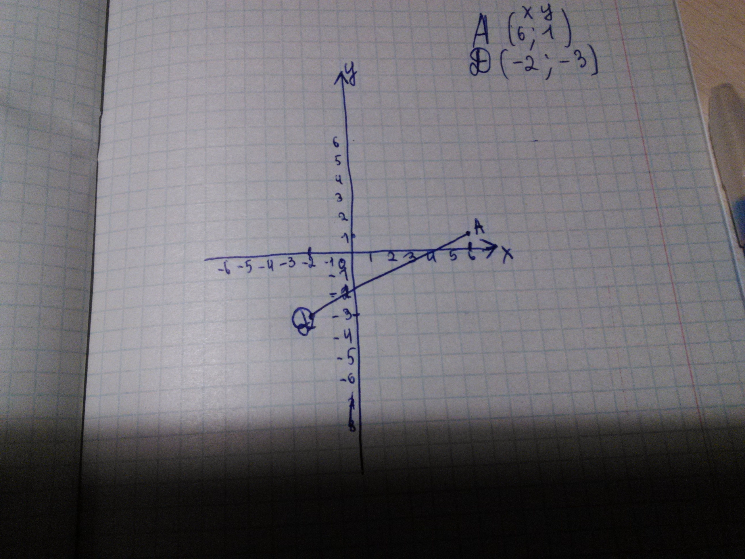 отметьте на координатной плоскости точки А (6,1) и D (-2,-3). проведите отрезок АD.