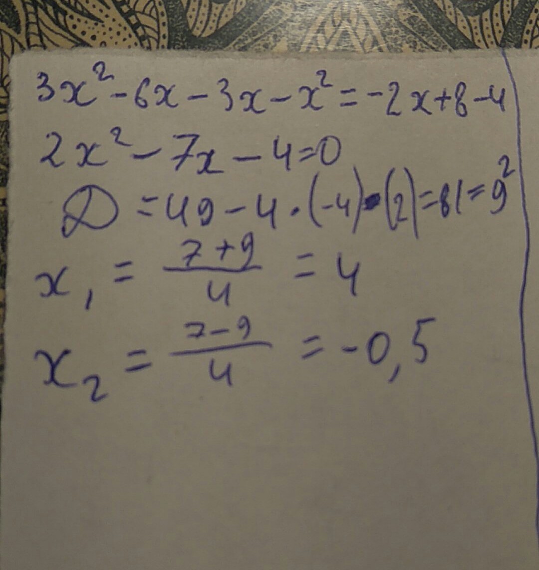 3х^2 - 6х - 3х - х^2 = -2х + 8 - 4