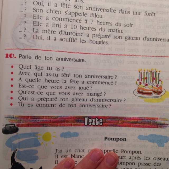 Помогите пожалуйста ! Французский 1 класс ! Расскажите пожалуйста про свой день рождения на французском по этим вопросам ( просто сделайте упражнение 20 ) пожалуйста ❤❤ можно написать про любой день рождения , заранее гигантское спасибо ! ❤❤