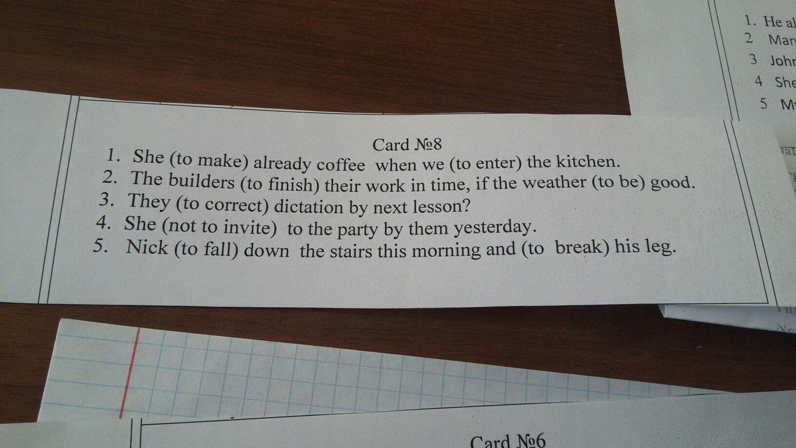 5. Nick (to fall) down the stairs this morning and (to break) his leg.