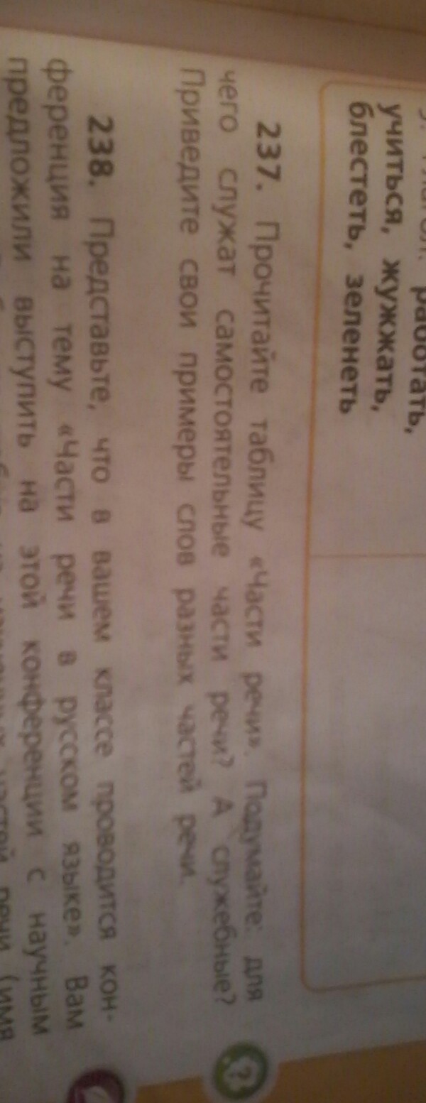 Часть речи Вопросы Примеры
