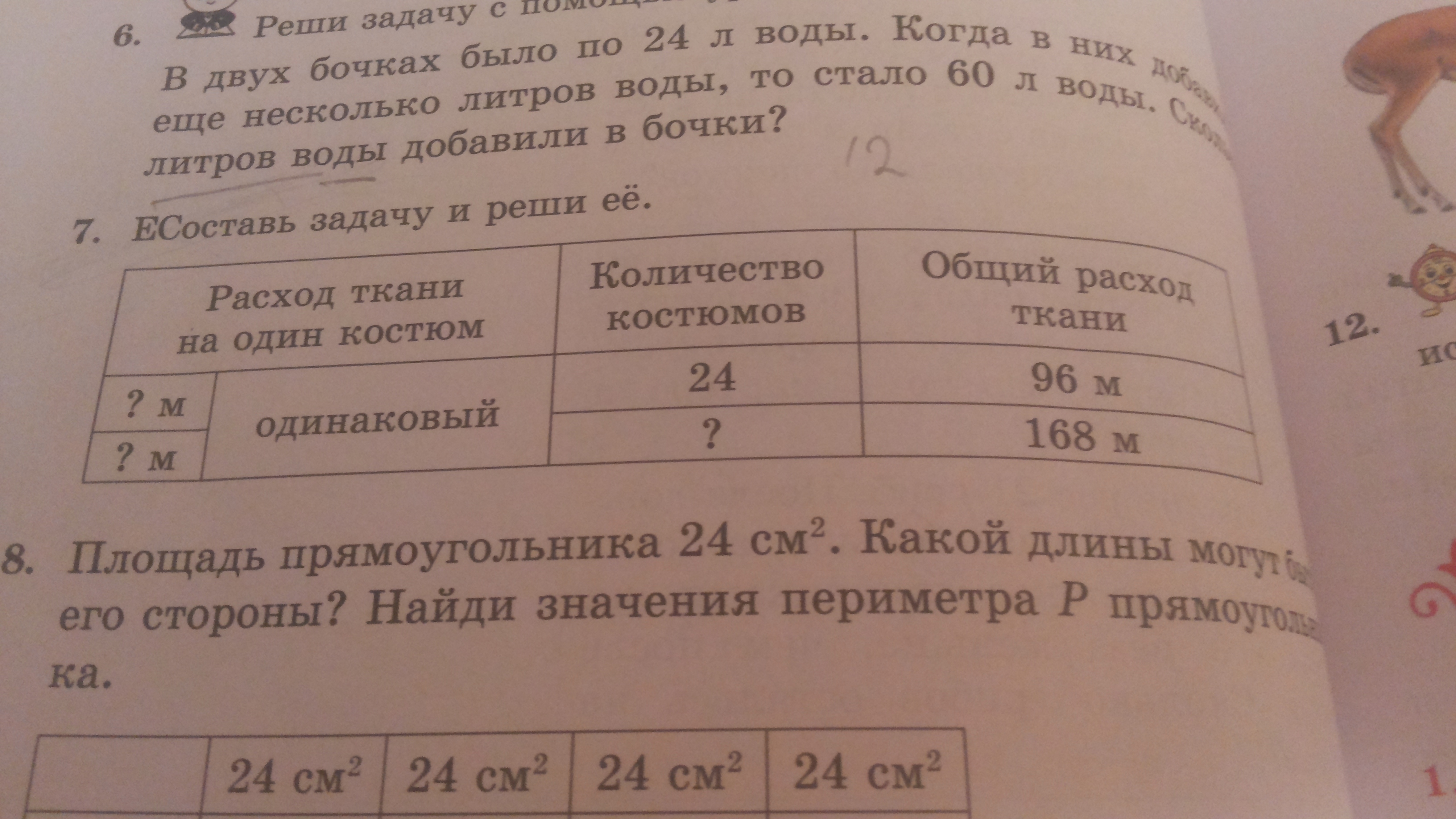 ответ: 4 м. - расход на один костюм; 42 костюма во второй колонке.