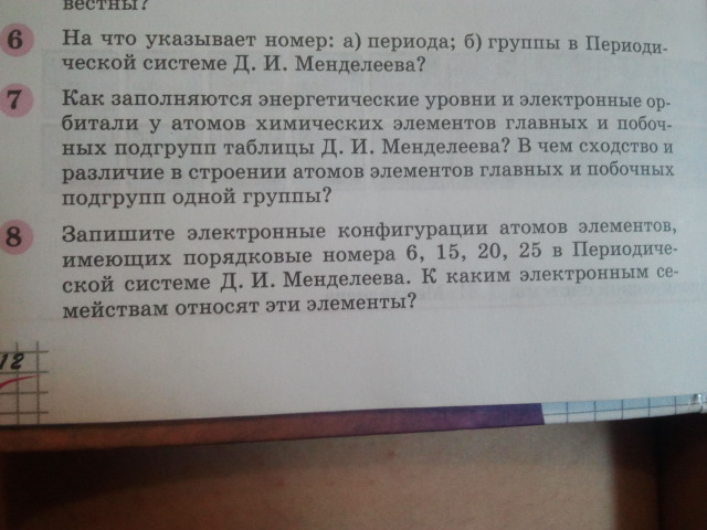 6)Номер периода указывает на число энергетических уровней. Номер группы указывает на число электронов на внешнем уровне у элементов главных подгрупп.