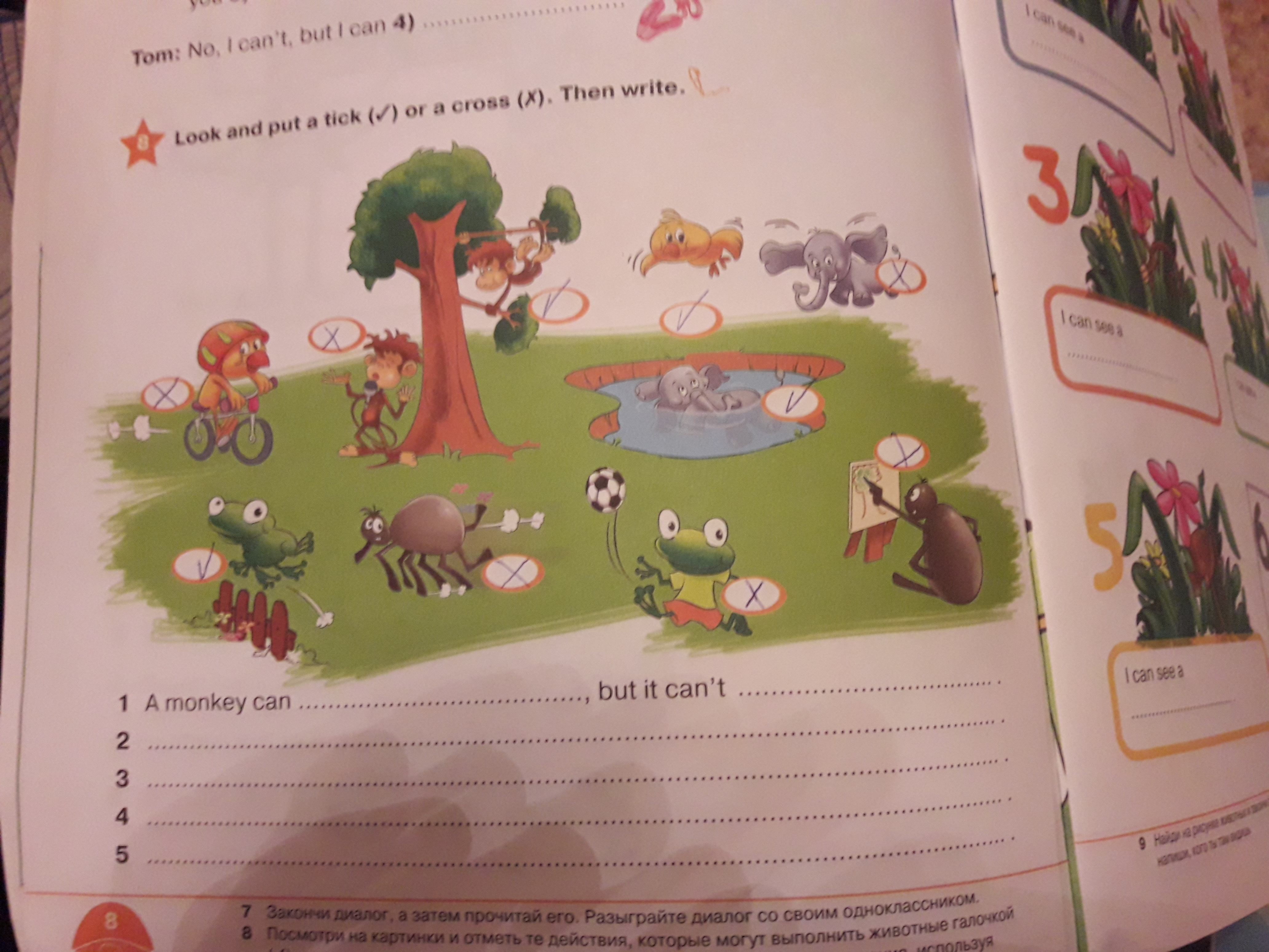 4) А frog can jump, but it can't play football.