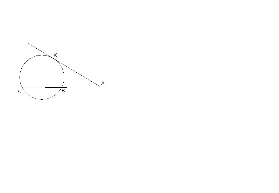 Через точку A, лежащую вне окружности, проведены две прямые. Одна прямая касается окружности в точке K. Другая прямая пересекает окружность в точках B и C, причём AB=2, AC=8. Найдите AK.