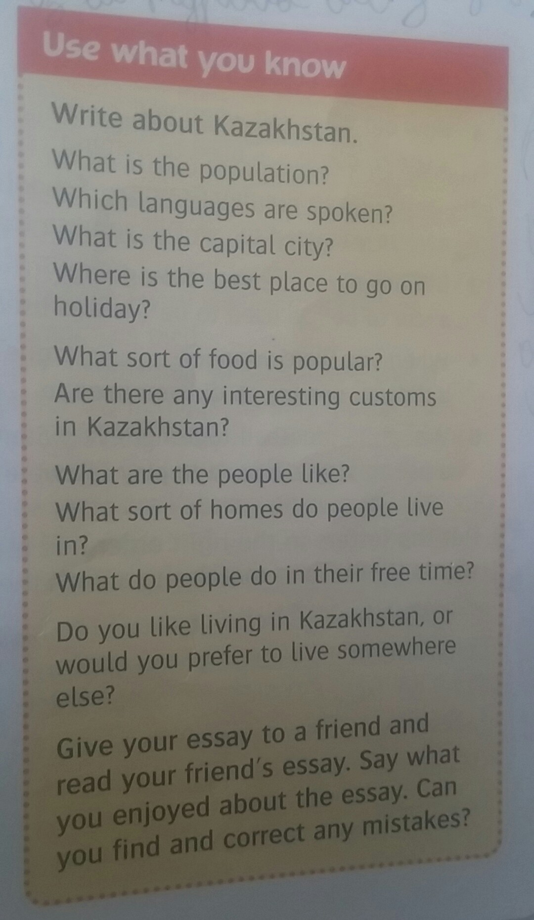 10)Да, мне нравится жить в Казахстане. Каждый день видеть просторные степи, высокие горы.
