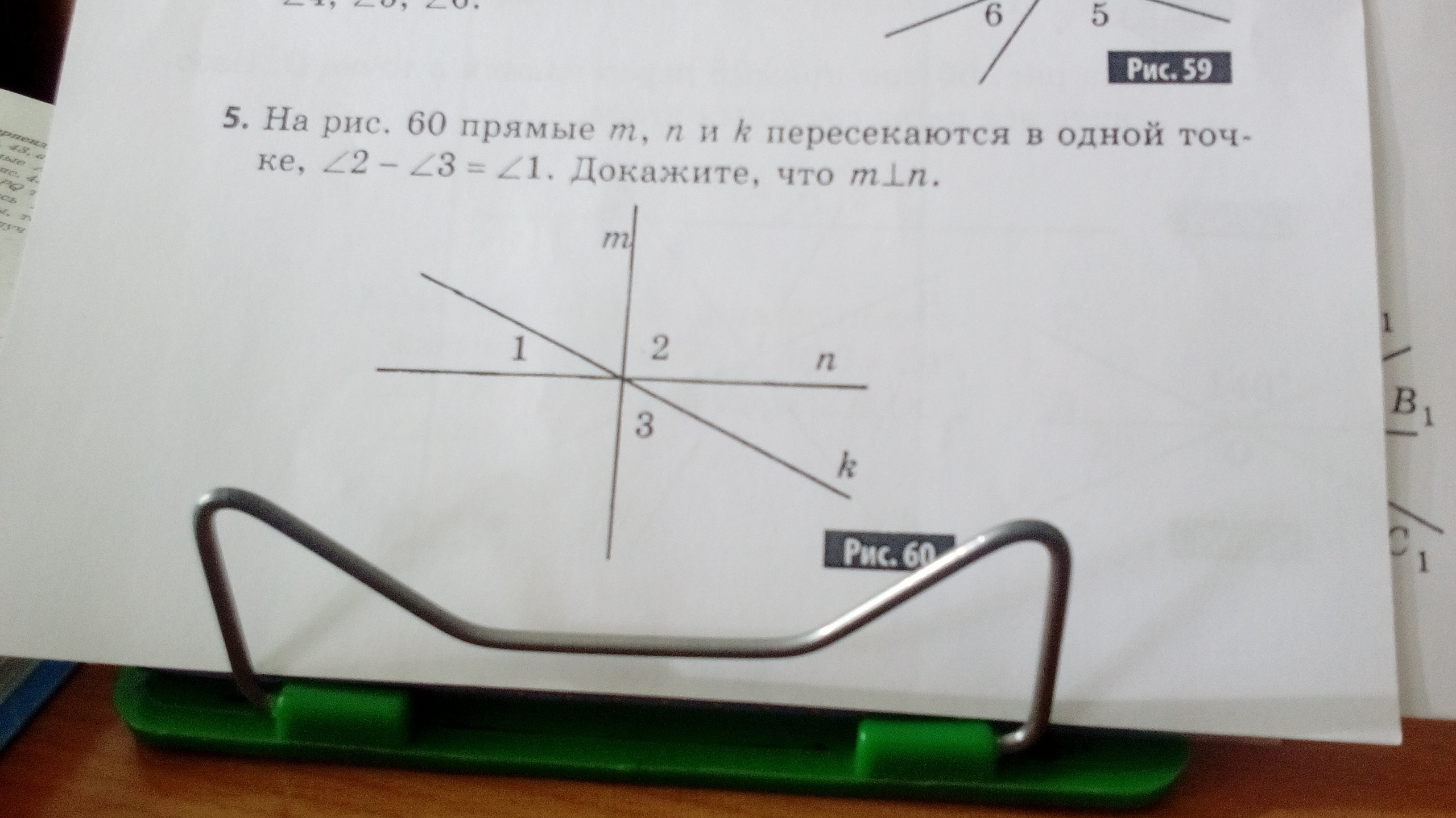 Острый угол между прямыми n и k является вертикальным к углу 1, поэтому эти углы равны, тогда ∠1+∠2+∠3 составляют развёрнутый угол, величина которого = 180°: