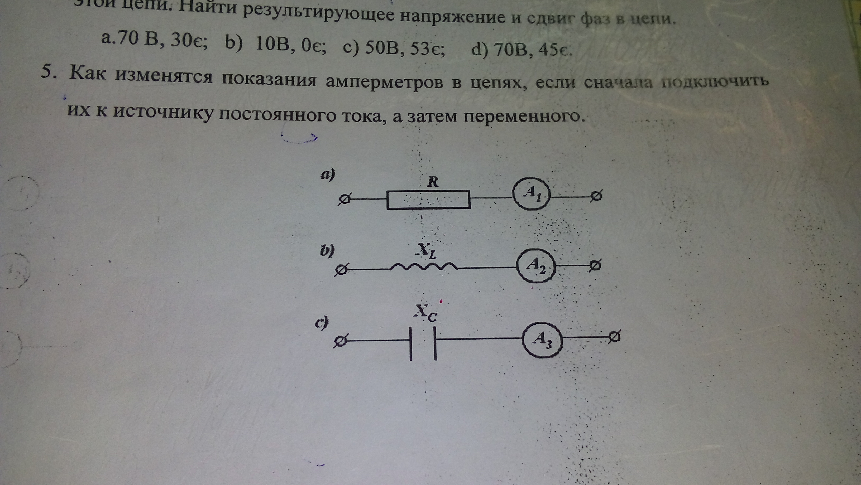 3) Если источник постоянного напряжения - то тока вообще нет - конденсатор представляет разрыв цепи. Если ток переменный - то амперметр покажет наличие тока.