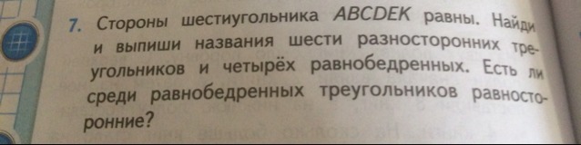 С помощью циркуля начертить окружность.Измерить циркулем ее радиус.На окружности отметить точку и отложить с помощью циркуля от этой точки по длине окружности 6отрезков,равных радиусу окружности.Соединить точки прямыми,получится правильный шестиугольник.Точки обозначить буквами АВСDEK.