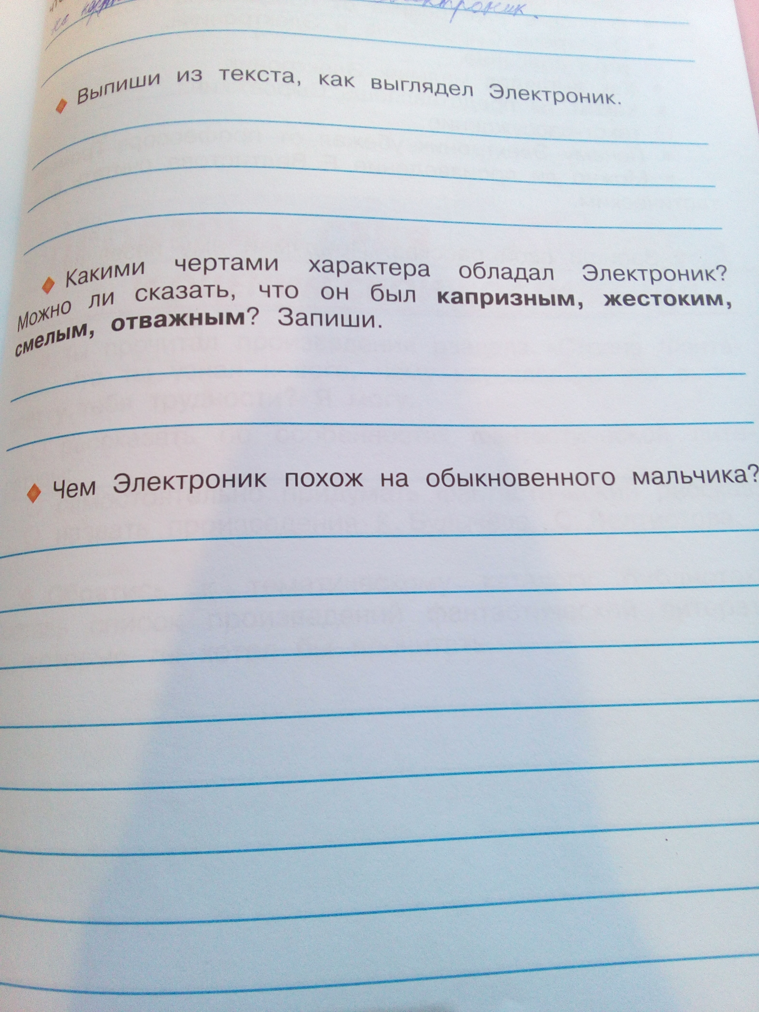 2) Электроник смелый, отважный, добры, честный, не оставит друга в беде и т.п