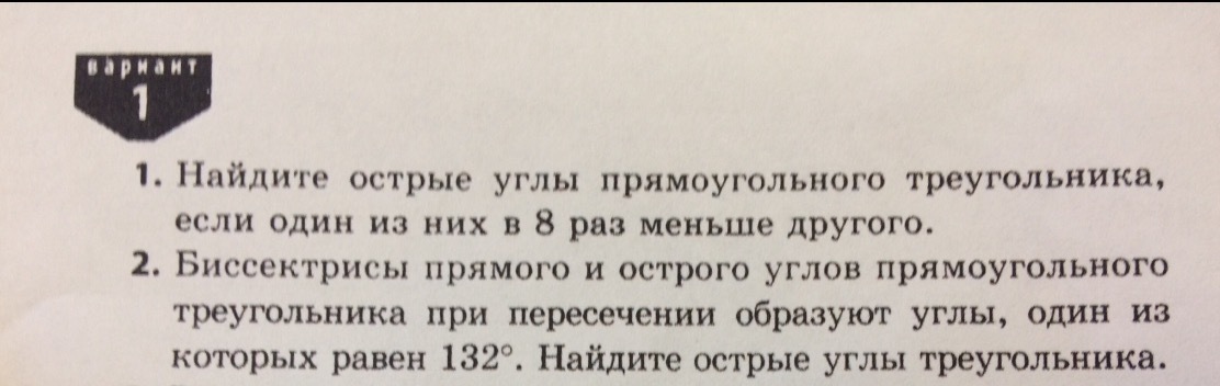 1)Один уг. Треугольника равен 90° т.к. он прямоугольный.