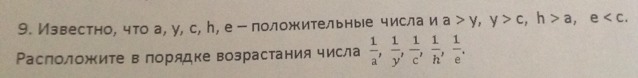 Ответ: 1/e>1/c>1/y>1/a>1/h