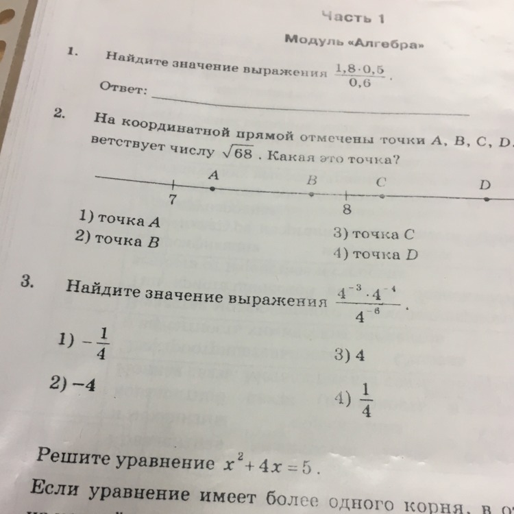 4^-3*4^-4/4^-6=4^-7/4^-6=4^-1=1/4. Ответ: цифра 4.