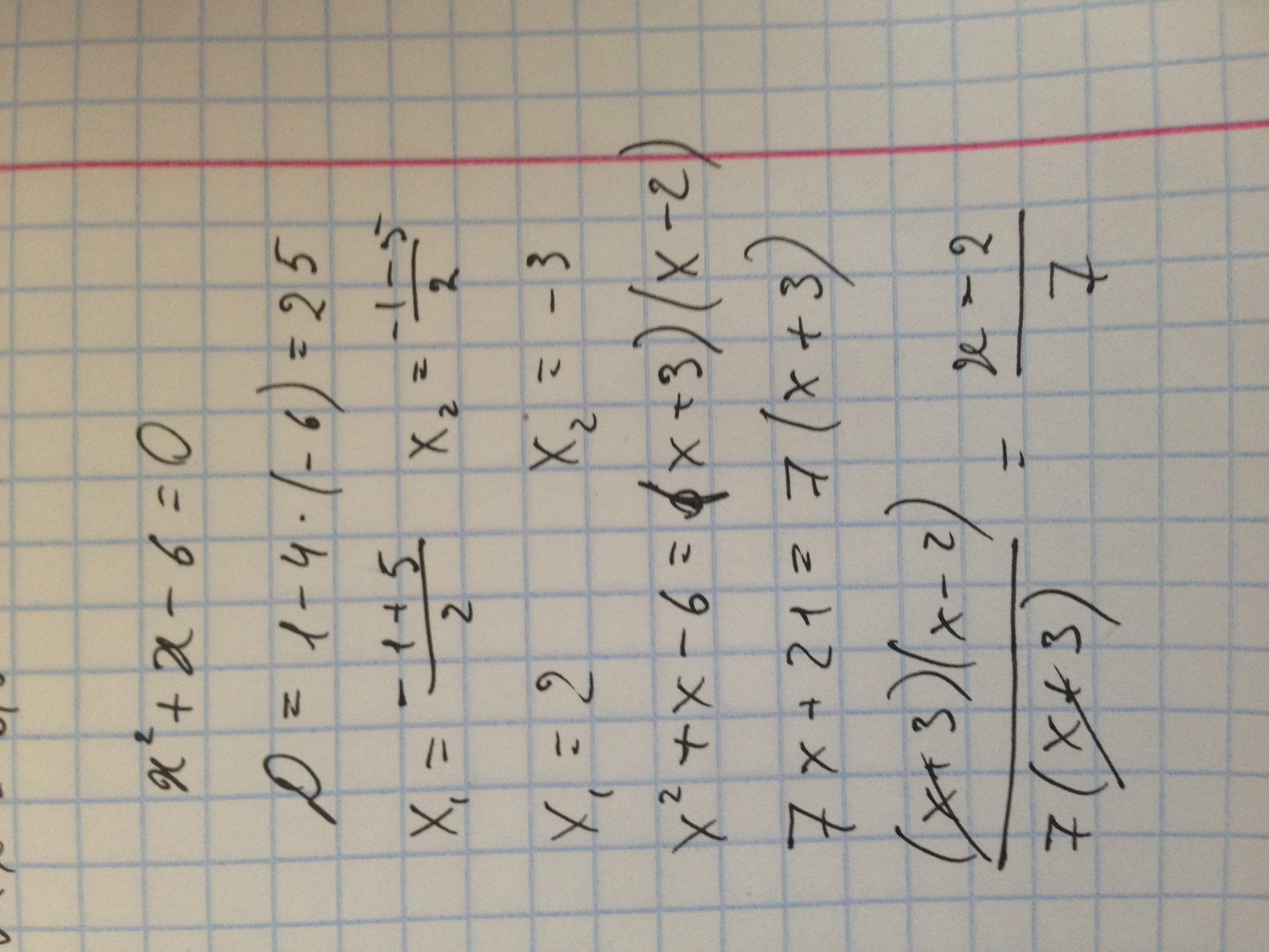 (х-2)(х+3)/7(х+3), х+3 сокращается, останется х-2/7