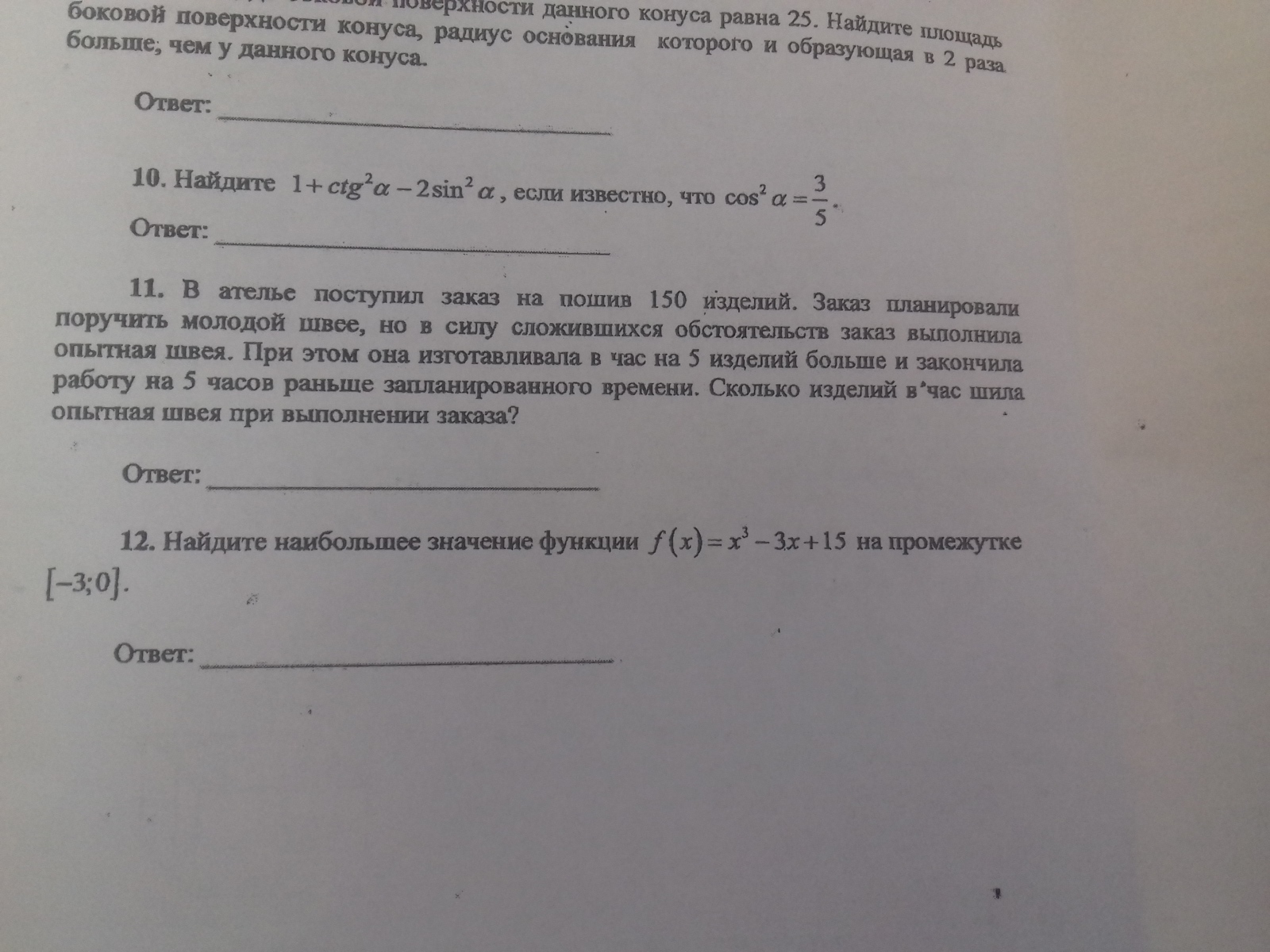 Да не за что , N12. Будет ответ равен 15 . Т.к. надо найти производную приравнять нулю и показать на интервале точку,входящую в отрезок и понять что на всем интервале она положительна , подставить наибольшое значение отрезка это 0 и получится 15.