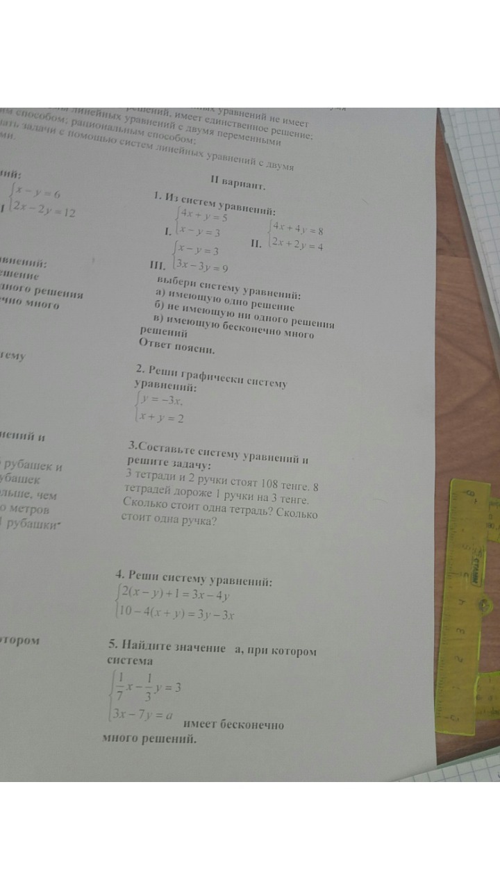 Пусть тетрадь стоит х тенге, а ручка y тенге. Тогда составляем систему