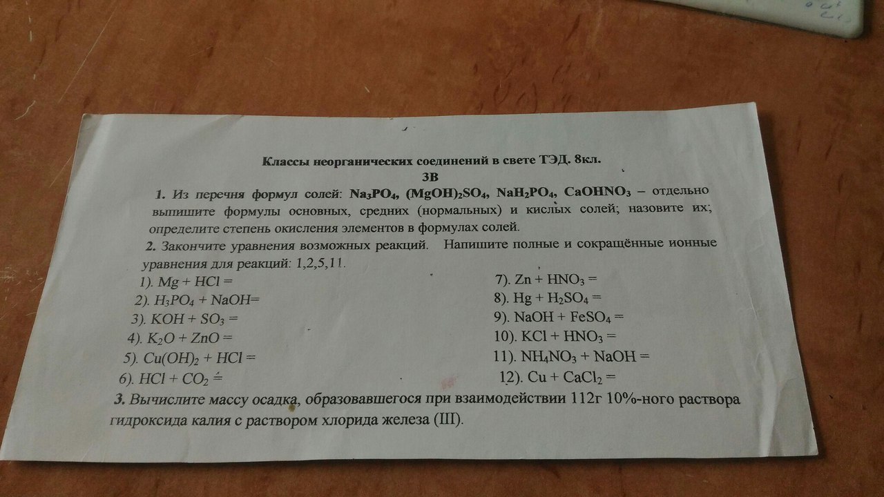6) hcl + co2 нет реакции,так как кислотный оксид не реагирует с кислотой