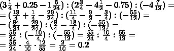 Помогите плиз даю 20 баллов! (3 1/4+0,25-1 5/24):(2 3/4-4 1/2-0,75):(-4 7/12) Пожалуйста по действиям! Дам корону+спасибо+5 звёзд!
