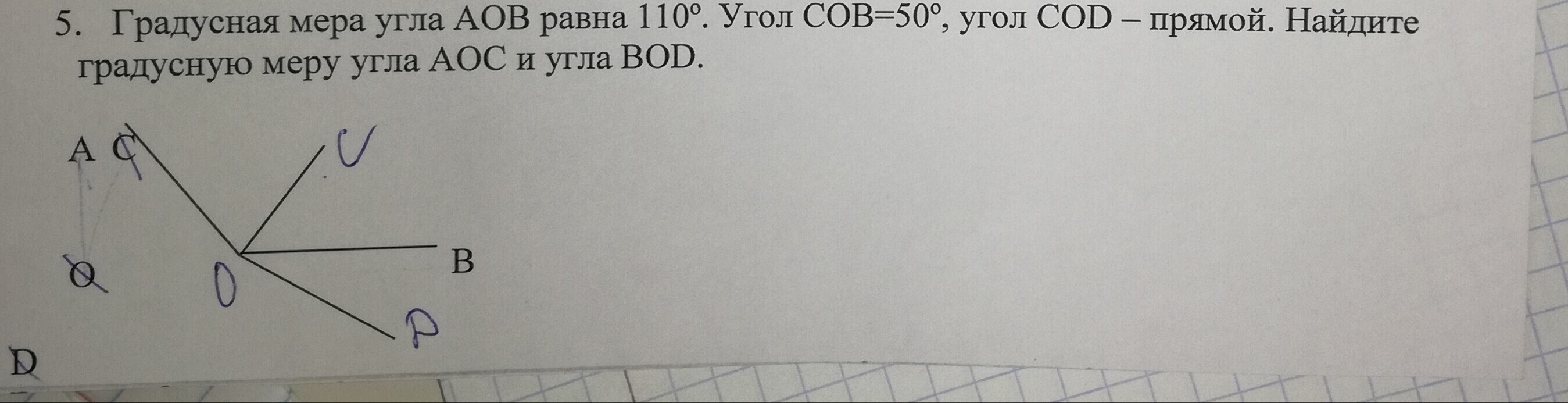 АОВ - СОВ = 110 - 50 = 60 - АОС