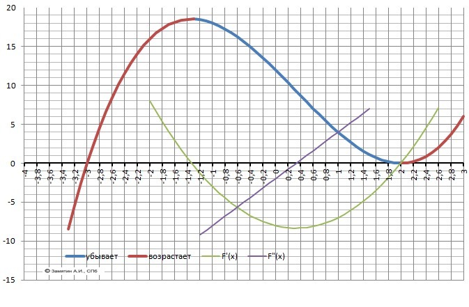 х1= - 4/3 = - 1,33 - максимум - Ymax(-1.33) ≈ 18.519