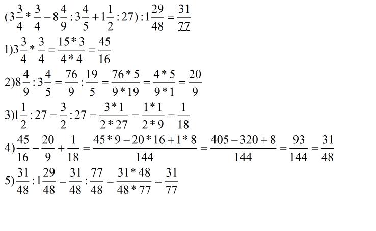 6)93/144:1 29/48=93/144:77/48=93/144*48/77=83/231