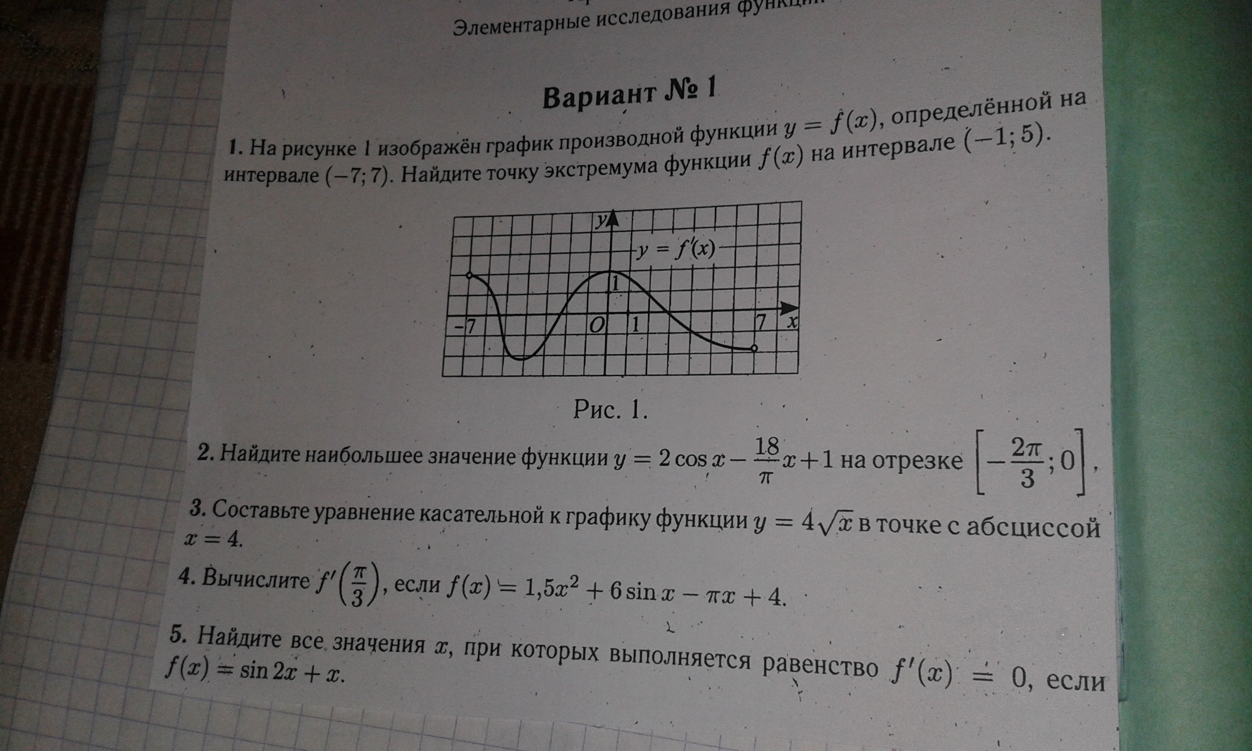 y ' =( 2cosx -(18/π)*x +1) ' = -2sinx - 18/π.