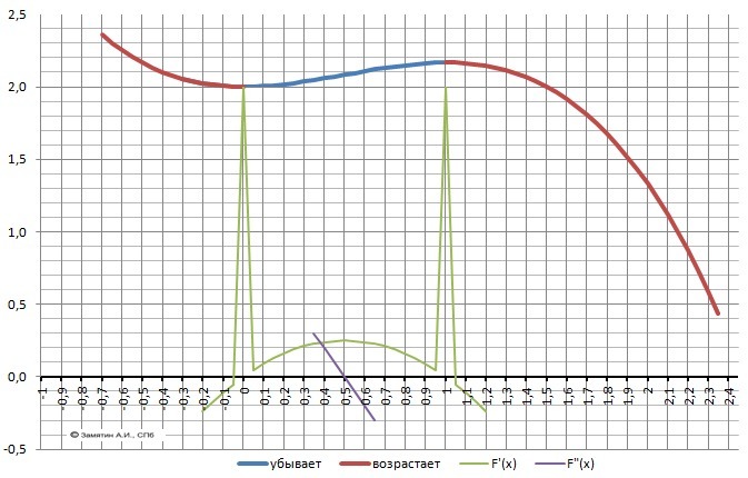 Максимум при Х=1. Ymax(1)= 2.16(6)