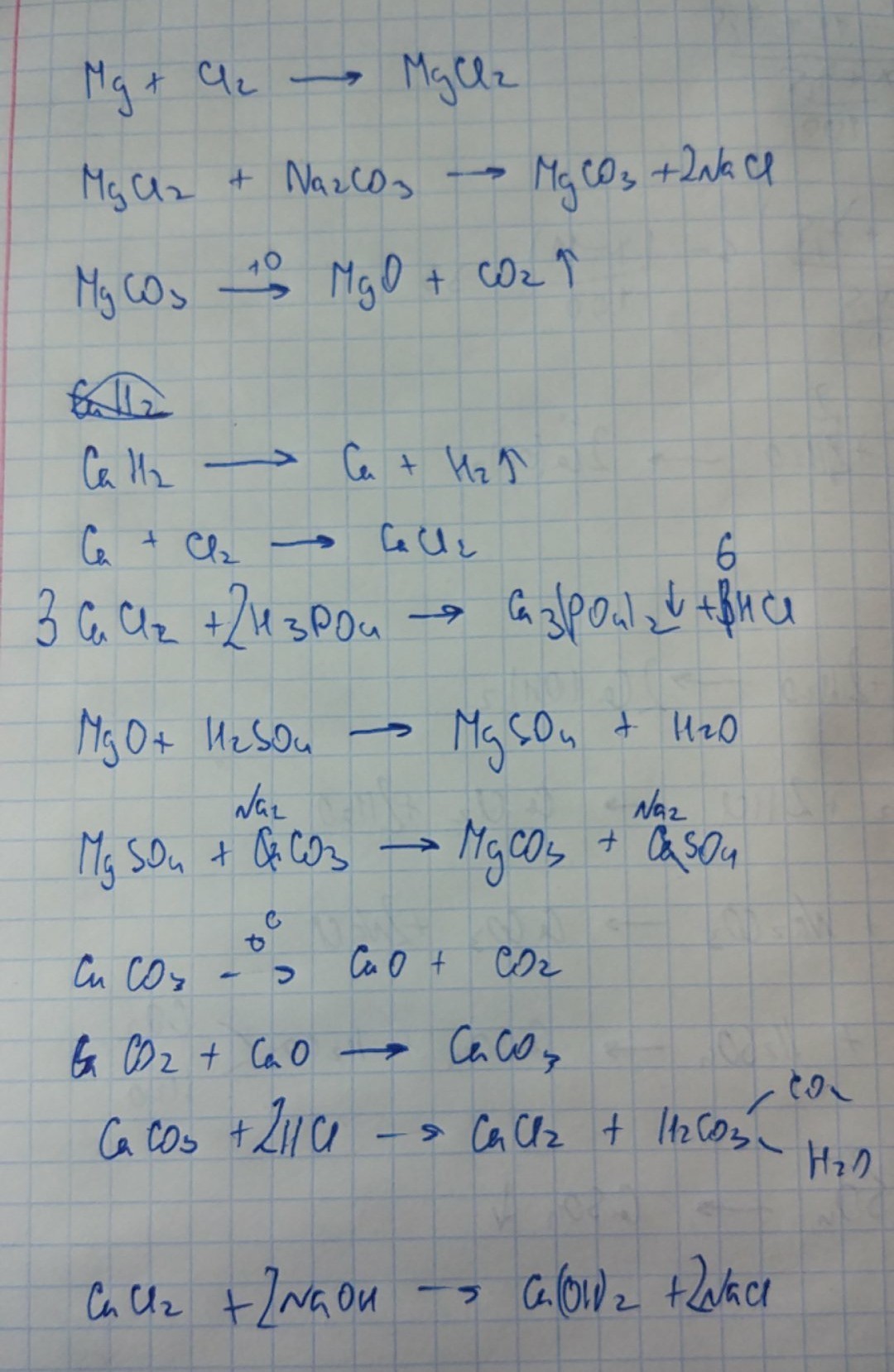 CaH2-->Ca-->CaCl2--->Ca3(PO4)2
