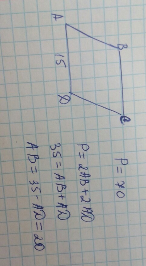 Найдите соседнюю с ней сторону если периметр параллелограмма равен 70