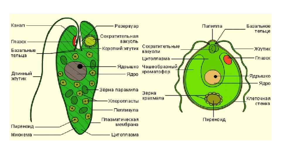 См во вложении СТРОЕНИЕ эвглены зеленой и хламидомонады.