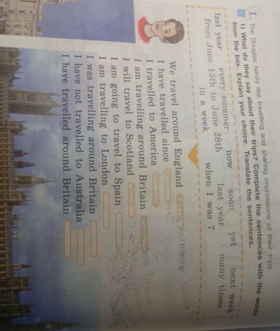 Тут нужно вставить слова, объяснить почему именно, то или иное слово, и время