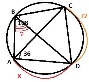 четырёхугольник АБСД вписан в окружность. Угол АБС равен 108 угол САД равен 36. найдите угол АБД. Ответ дайте в градусах