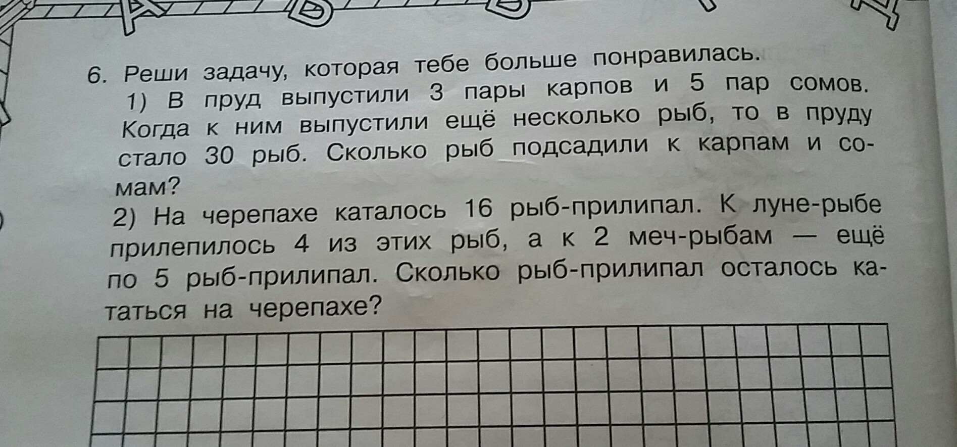 ответ: на черепахи осталось кататься 2 рыбы-прилипалы