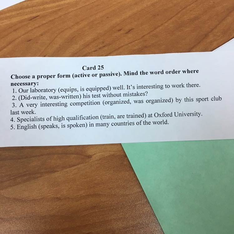 1 … is equipped well 2 Did he write his test … 3 was organized 4 are trained 5 is spoken