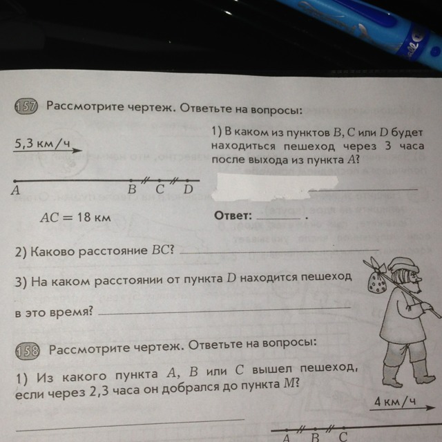 Так как АС = 18 км, а пешеход прошёл 15,9 км, то он будет находиться в точке В
