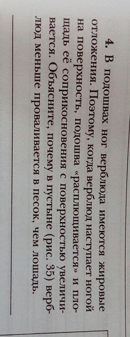 потому что у верблюда площадь подошвы ноги больше, чем у лошади. Чем больше площадь соприкосновения, тем меньше давление, а следовательно давление на песок будет меньше, значит верблюд будет проваливаться меньше, чем лошадь.