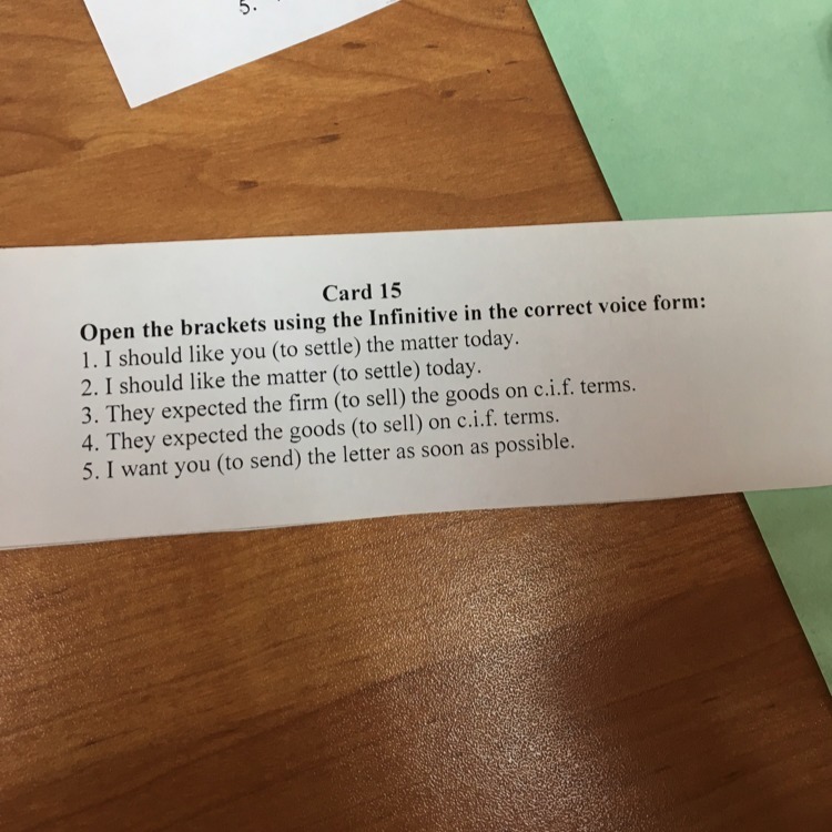 1 …to settle… 2 … to be settled 3 … to sell … 4 … to be sold … 5 … to send …